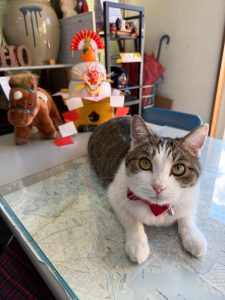 当社の看板ネコ、ももたろうサンタ🎅はクリスマスに向けてパワーチャージ中です😹😹