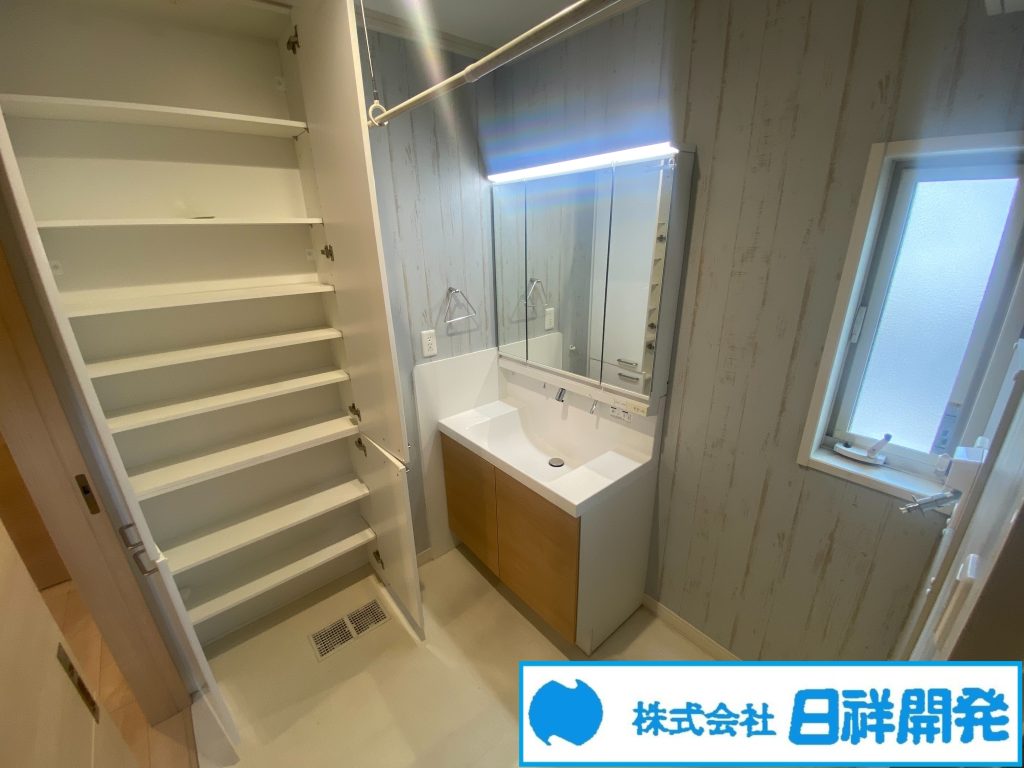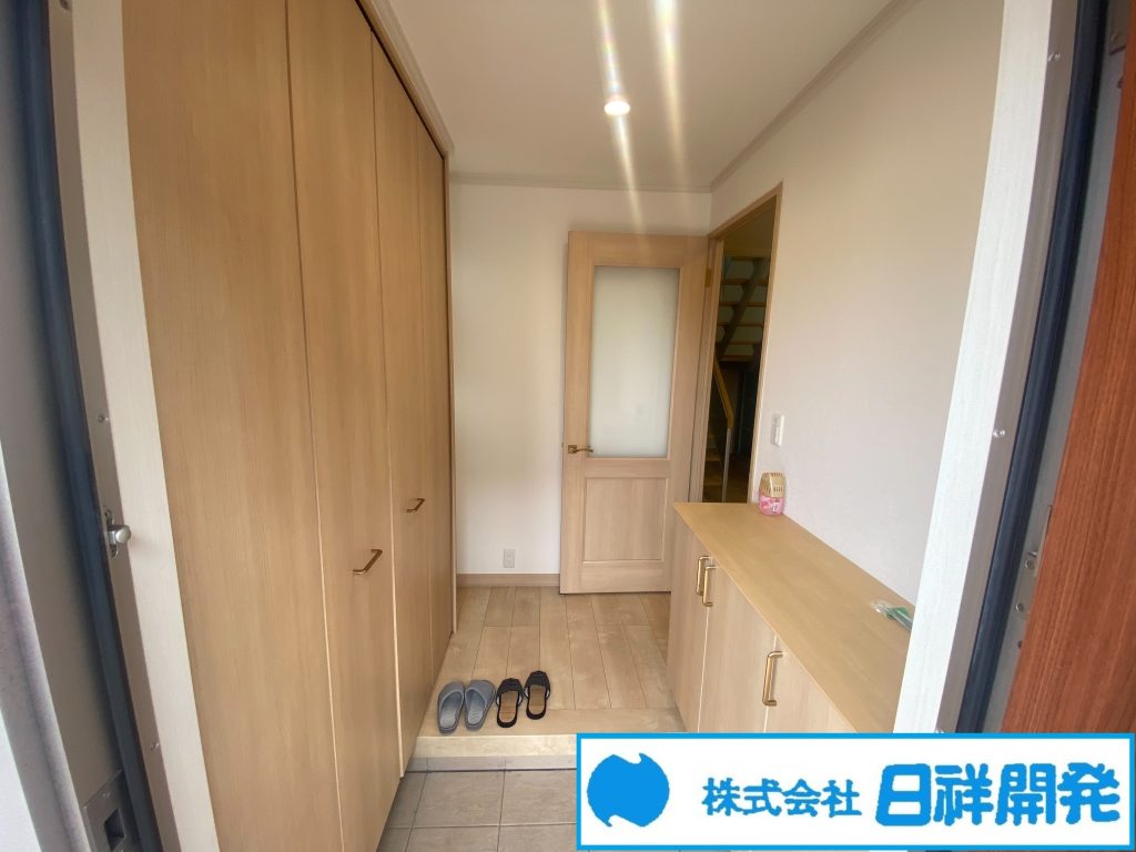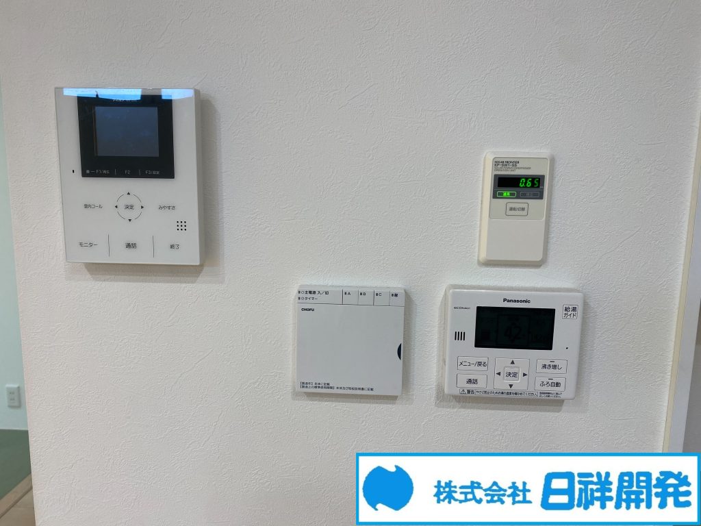 収納スペース、ディンプルキー、複層ガラス、太陽光発電システム、高気密高断熱住宅、タンクレストイレ、クロゼット6ヶ所、ダウンライト、室内物干、カーポート、土間、 スキップフロア、ダブルロックドア