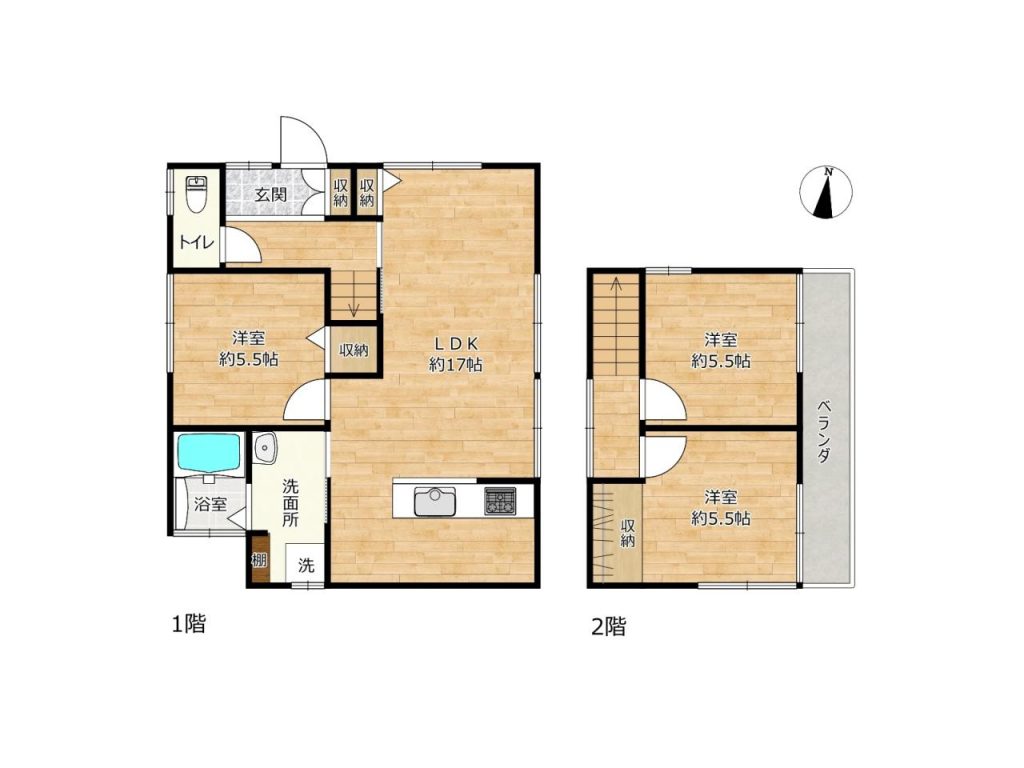 間取内容 | LDK約17畳 1階 1室 洋室約5.5畳 1階 1室 洋室約5.5畳 2階 2室 | ||