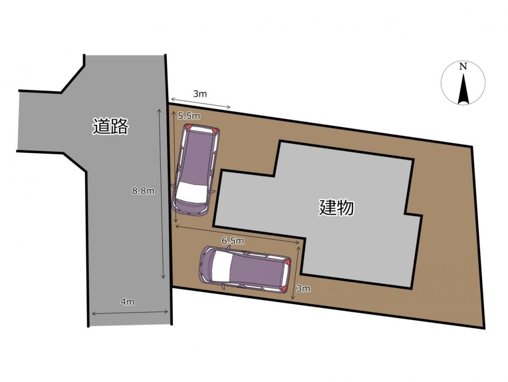 | 接道方向1 | 北西 | 接道間口1 | 約8.8m |