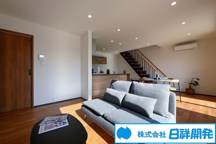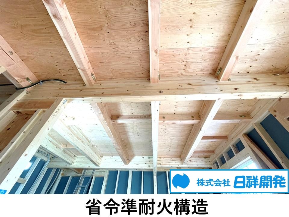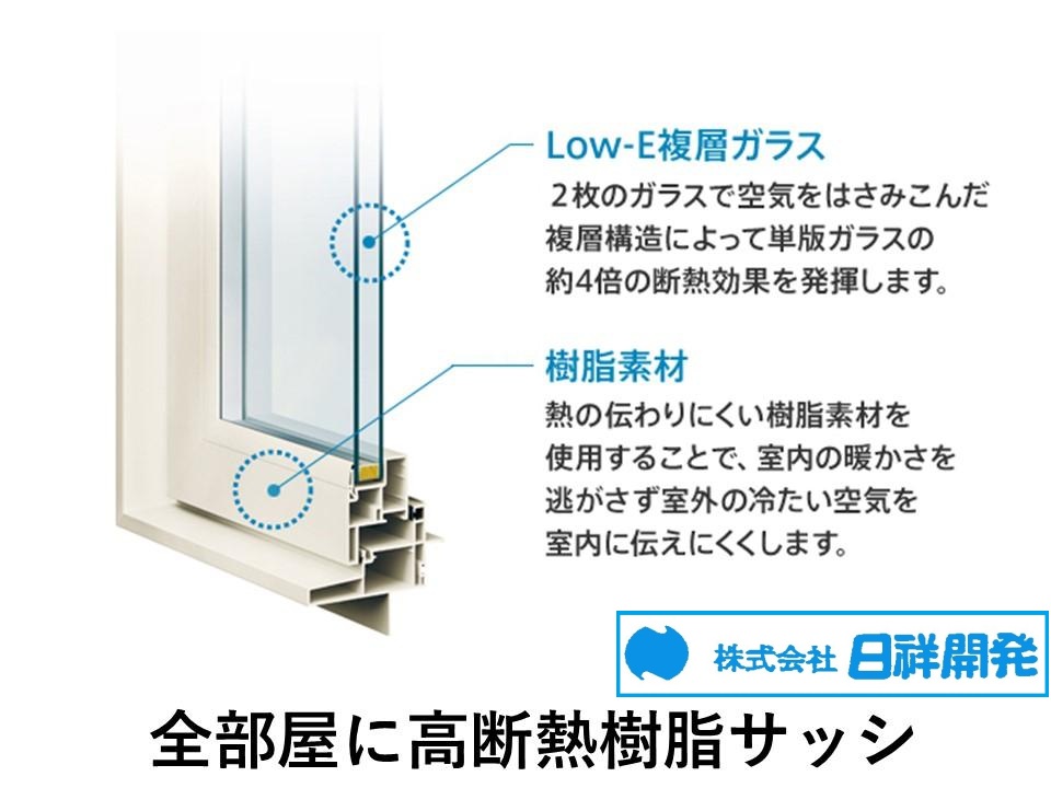 ディンプルキー、複層ガラス、物置、省エネ給湯器、太陽光発電システム(5.1kW)、全居室フローリング、オープンキッチン、II字型キッチン、全居室収納、玄関収納、クロゼット3ヶ所、人感照明センサー、ダウンライト、全室照明付、クッションフロア、インターネット対応、ダブルロックドア、24時間換気システム、吹抜、