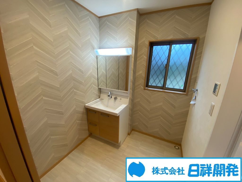 ■内装リフォーム 場所:トイレ、浴室、脱衣所 時期:2025年10月 内容:トイレ新品、洗面化粧台新品、室内クロス貼替、クッションフロア張替、襖・畳表替え、火災報知器新品、モニター付インターホン新品